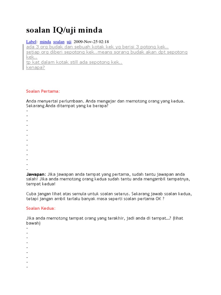 Soalan Soalan Iq Dan Jawapan Tersoal M