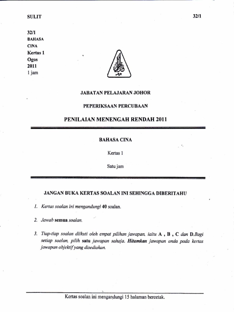 Percubaan Pmr 2011 Bahasa Cina Johor Pdf